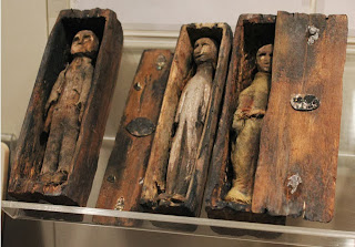 Lalu misteri berikutnya adalah, para peneliti menduga pembuat peti dan figur di dalamnya adalah orang yang berbeda. Tampaknya peti mati yang dibuat itu tidak ditujukan untuk figur mayat mungil di dalamnya. Hal ini terlihat seolah ada pemaksaan memasukkan figur ke dalam peti, yang terlihat dari beberapa bagian lengan yang patah. Lagipula figur-figur mini didandani sedemikian rupa, dengan sepatu bot, juga model pakaian yang berbeda-beda. Mereka mungkin ada, atau dibuat untuk hal lain, bukannya berbaring di dalam peti mati tersebut.